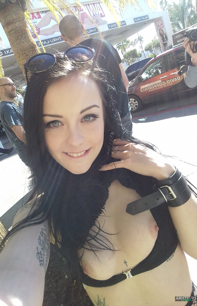 She’s so freaking hot! I seriously can’t stop staring at her incredible big MILF titties. And I know you can’t either. Now I think it’s safe to say that this is my new Favorite Girls Flashing In Public Pics of all time! And I bet that she isn’t wearing any panties under her dress too. She’s so naughty! I’m actually pretty sure that this is part of a bigger collection as well. But unfortunately I can’t find any more of her. Do any of you have them?